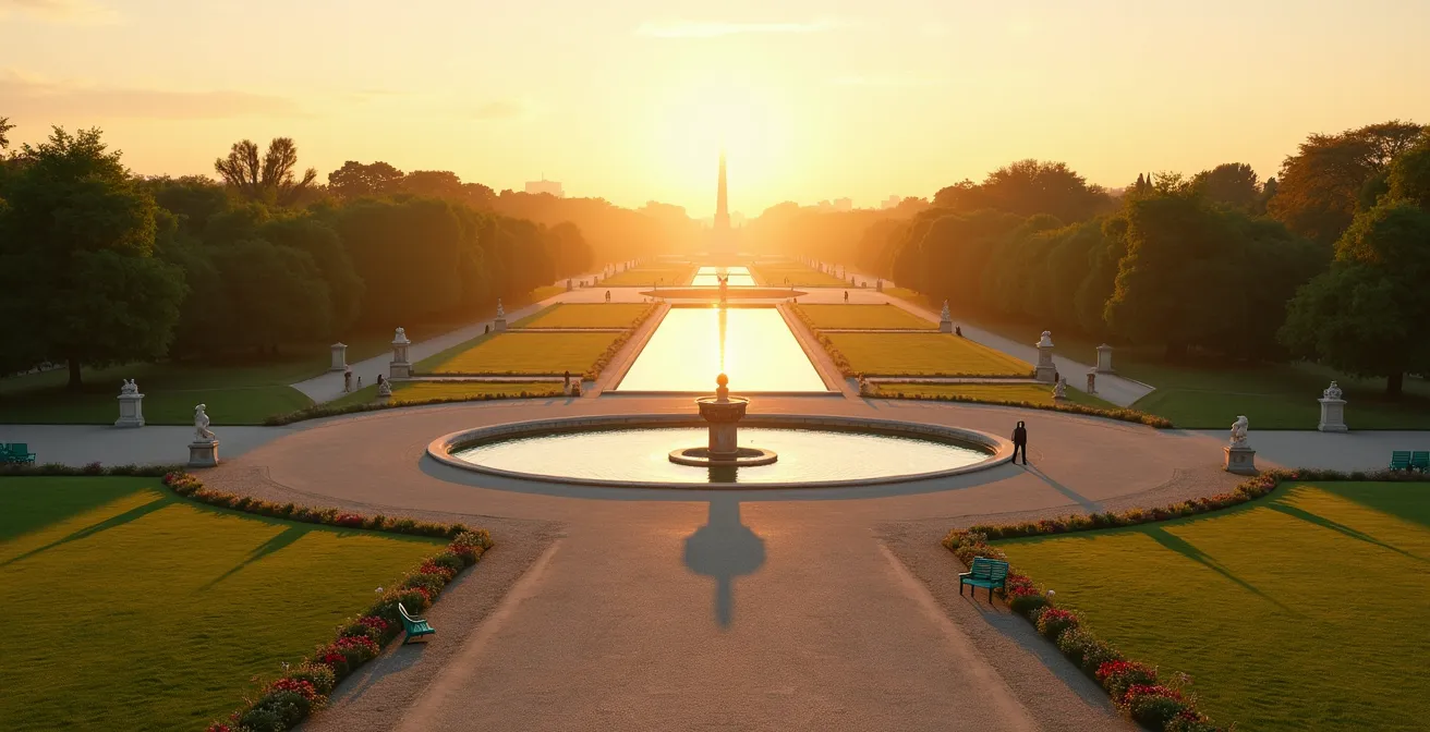 Pour beaucoup, le Jardin des Tuileries n’est qu’une agréable traversée, un raccourci verdoyant entre la majesté du Louvre et l’effervescence de la Concorde. On y flâne, on s’y assoit sur les iconiques chaises vertes, on observe les enfants pousser des voiliers sur les bassins. Cette perception, bien que juste, occulte l’essentiel : ce jardin n’est pas un simple décor, mais une pièce maîtresse de l’urbanisme parisien, un manifeste de pouvoir et une composition intellectuelle d’une rigueur implacable.