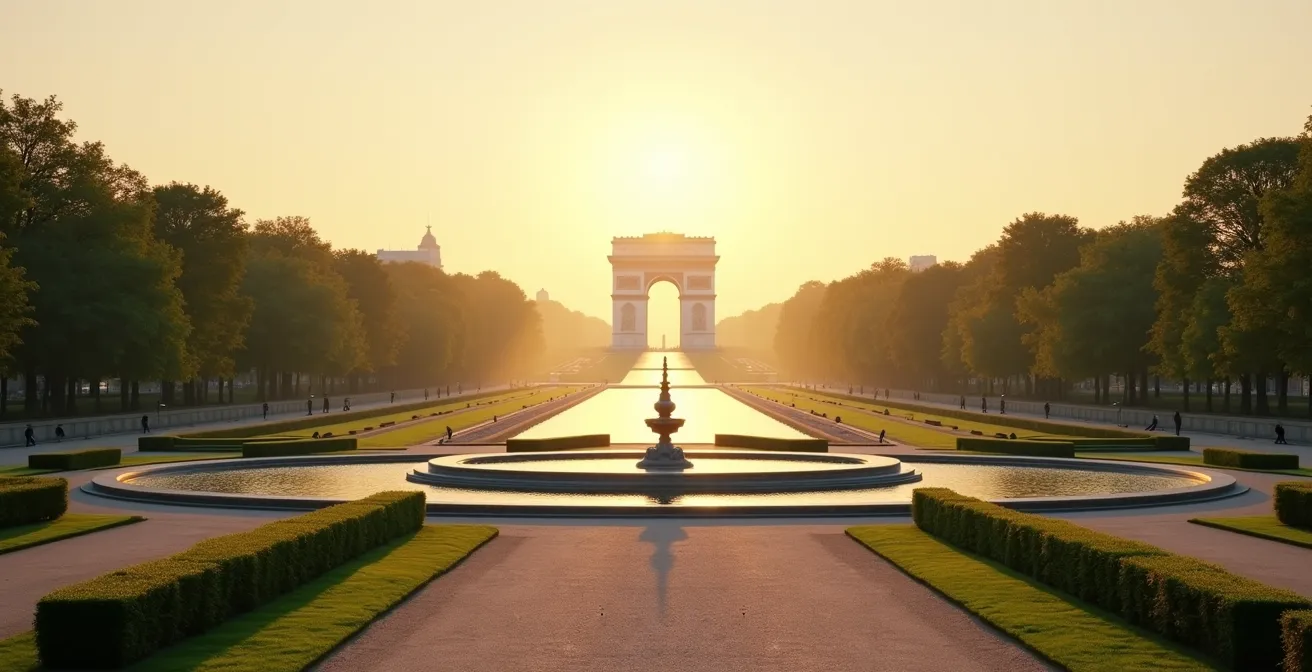 La transformation de cette promenade en l’avenue triomphale que nous connaissons est plus tardive, notamment sous l’impulsion du duc d’Antin au 18ème siècle et des grands travaux haussmanniens au 19ème. Mais le geste initial, l’impulsion urbanistique, vient de Le Nôtre. C’est lui qui a planté la graine de l’Axe Historique dans ces anciens marécages. Les jardins actuels des Champs-Élysées, avec leurs pavillons et leurs parterres, sont donc les héritiers directs de cette volonté de projeter la structure du jardin royal sur le paysage environnant.